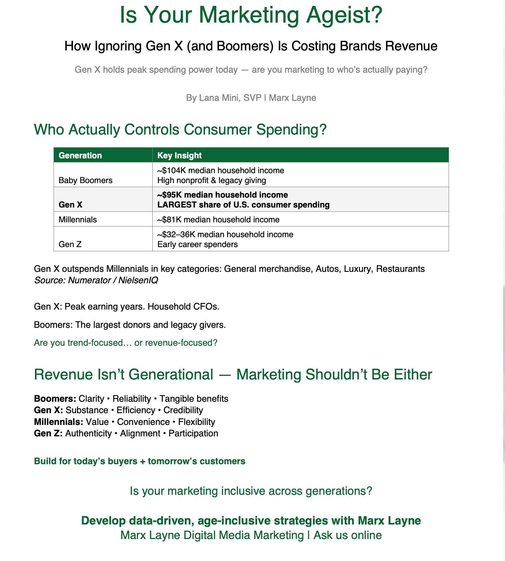 If the answer is yes to most, your messaging might unintentionally say: "This isn't for Gen X (or even older Millennials)." That's not clever targeting—it's leaving money on the table.