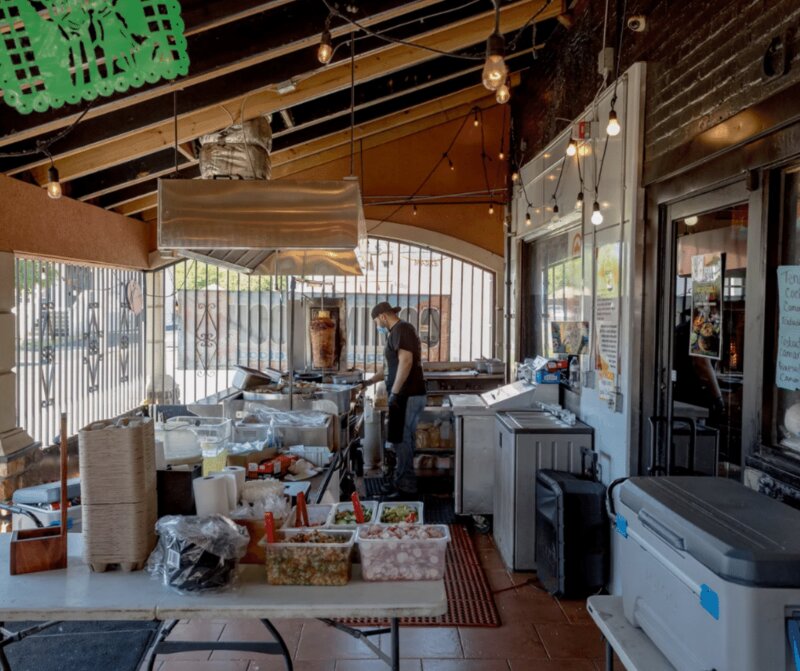 An employee at La Palapa del Parian in Springwells wears a mask on the first day of dine-in service during Detroit’s restaurant reopening on June 8, 2020. Christian Gerard