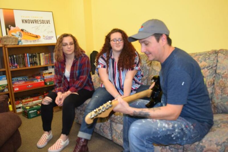 KnowResolve founder Dennis Liegghio, far right, enjoys a musical moment with members of the Shed’s teen council. Liegghio will be one of the keynote speakers at the conference on suicide Jan. 23-25 in Plymouth.
