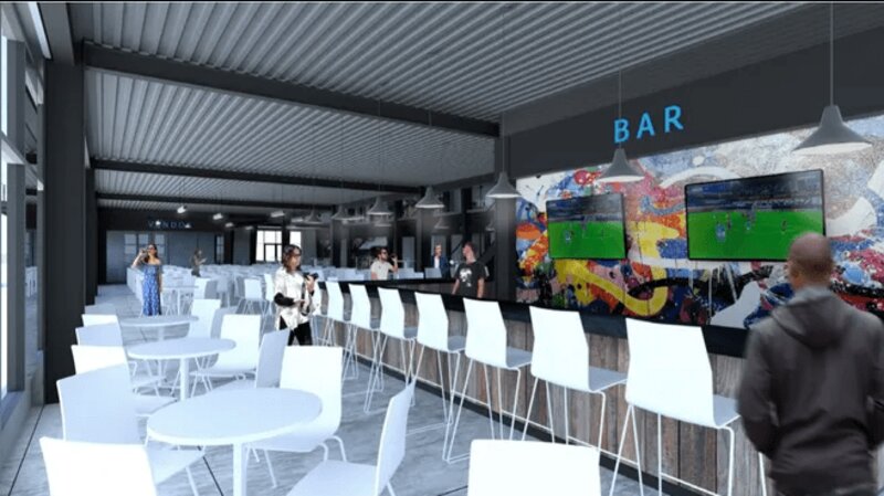 Earlier plans for the venue included a mezzanine level containing the shuffleboard courts, but now, everything will be on one floor.