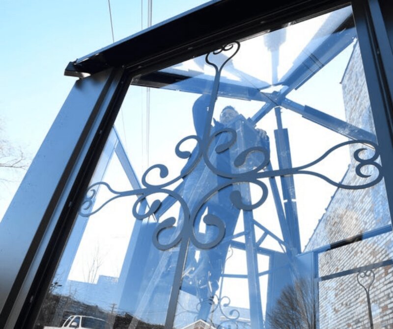 Detroit-based AptumBuild Solutions and their all-weather, lantern-shaped outdoor dining structure, with owner and designer Bill Schofield, outside the manufacturing facility, Disenos Ornamental Ironwork in Detroit, Michigan on December 18, 2020.